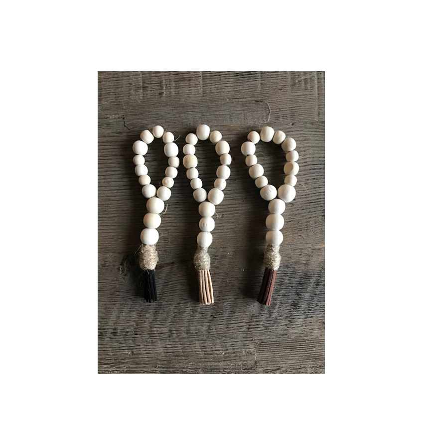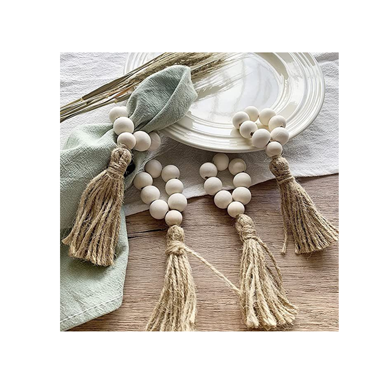 แหวนผ้าเช็ดปากลูกปัดไม้สไตล์เชือกคอตตอนสำหรับตกแต่งบนโต๊ะสีขาว4ชิ้น