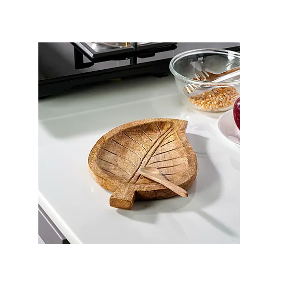 จานอาหารทรงใบไม้ทำจากไม้อุปกรณ์รับประทานอาหารจานเสิร์ฟทรงสี่เหลี่ยมดีไซน์แบบขายส่ง