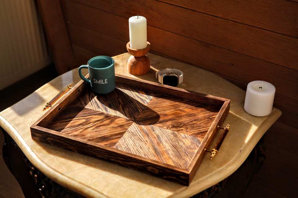 ถาดเสิร์ฟทรงสี่เหลี่ยมผืนผ้าไม้สไตล์สำหรับร้านอาหารและของตกแต่งบ้าน