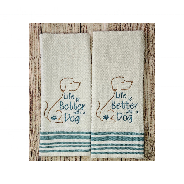 สไตล์พื้นที่ของคุณ100% ชีวิตผ้าฝ้ายจะดีกว่าด้วยผ้าปักลายสุนัขรีไซเคิลได้18X28น้ำหนักเบาแห้งเร็วและยั่งยืน kitchentowel