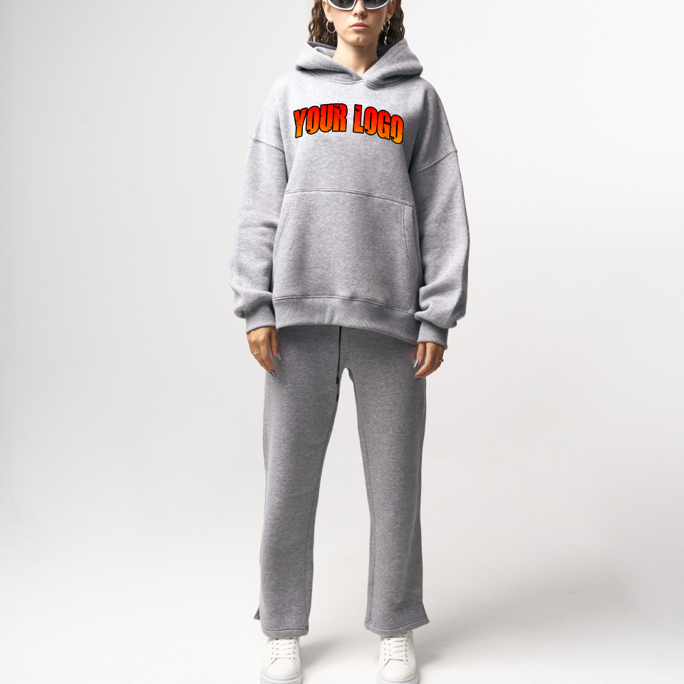 ชุดวอร์มผู้หญิงแบบ 2 ชิ้น คอวีกว้าง ตัดเย็บพิเศษจากผ้าฝ้ายเฟรนช์เทอร์รี่ 100% ดีไซน์ทันสมัย สำหรับฤดูหนาว สีพื้น