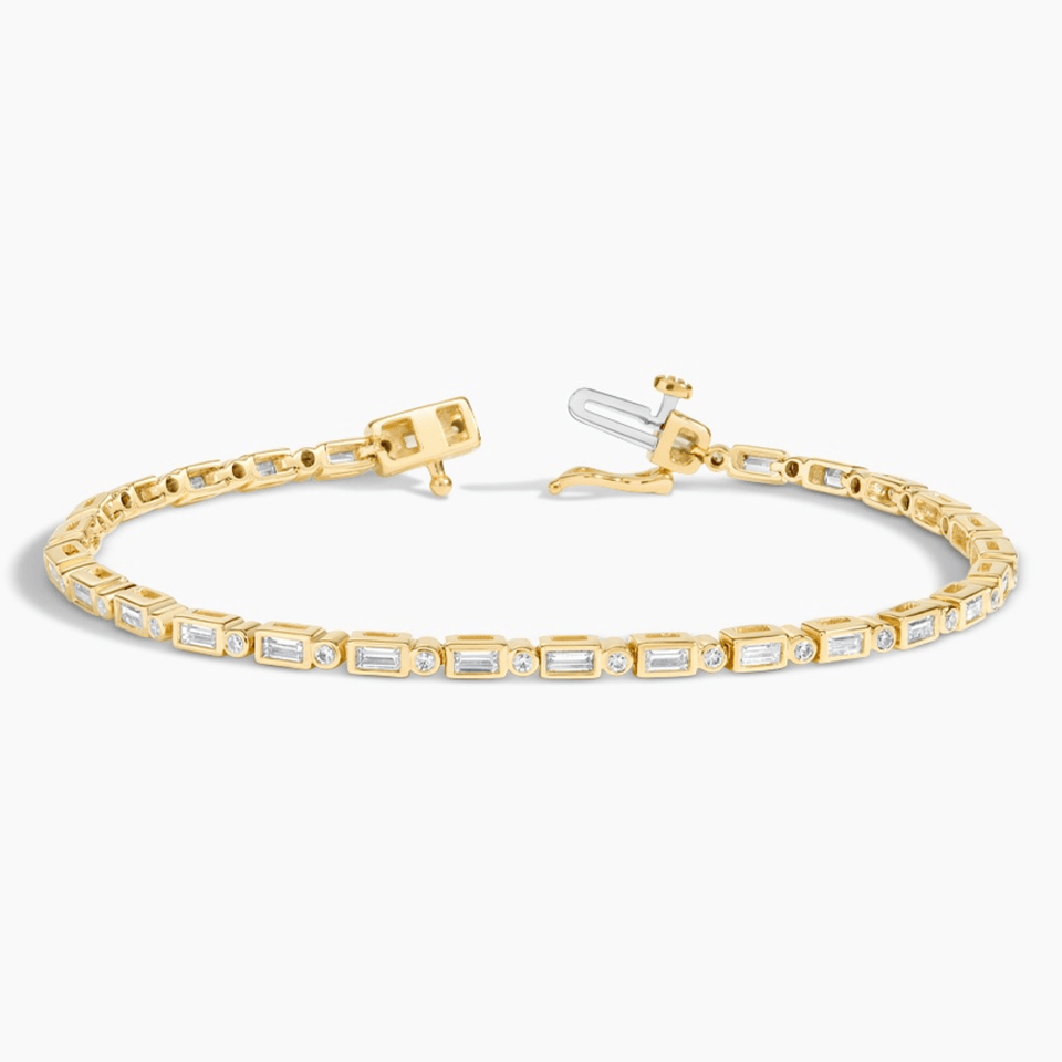 สร้อยข้อมือทองคำสีเหลือง10K มีสไตล์ด้วยเพชรที่ปลูกในห้องทดลองแบบบาแกตดีไซน์เทนนิสที่ทันสมัยสำหรับผู้หญิงยุคใหม่