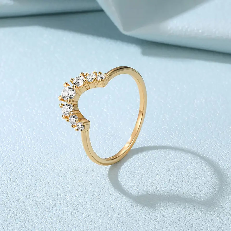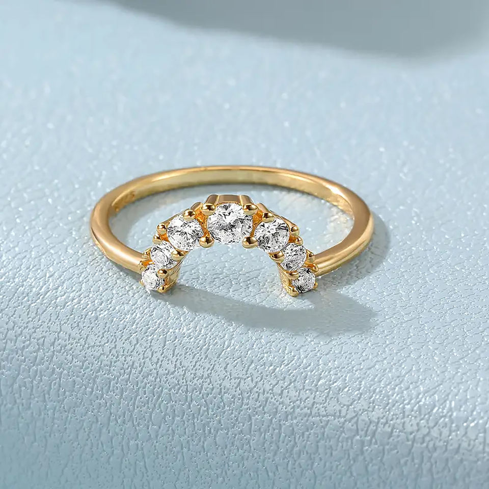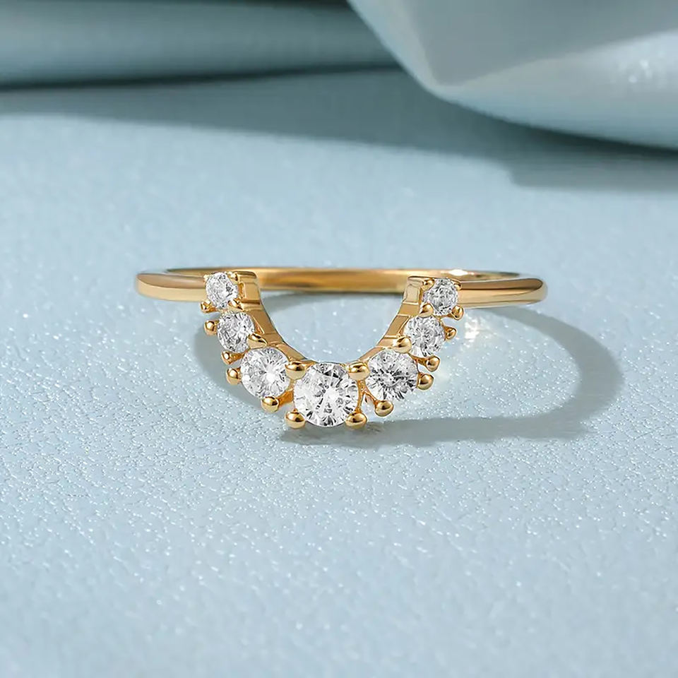 แหวนแต่งงานหรือแหวนหมั้นทรงโค้งหรือซ้อนกัน ประดับเพชรทรงกลมเจียระไน ทองคำแท้ 14K ดีไซน์ทันสมัย แหวนเพชรเลี้ยงในห้องปฏิบัติการสำหรับเธอ