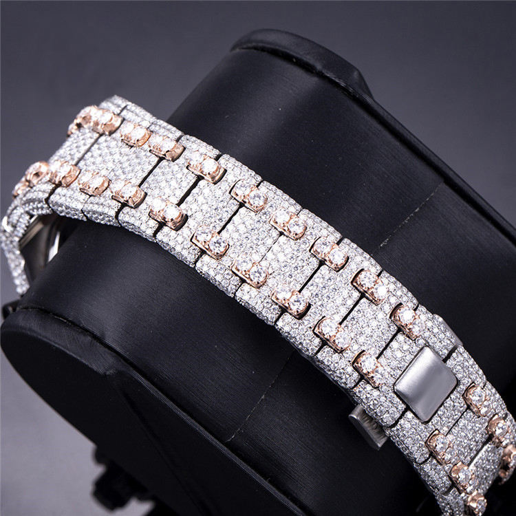 นาฬิกาเพชร32 CT VVS1เพชรมอยส์ซาไนต์งานทำมือแก้วดีไซน์ฮิปฮอปเคลื่อนไหวอัตโนมัติของขวัญปีใหม่ผู้ชายแฟนหนุ่ม