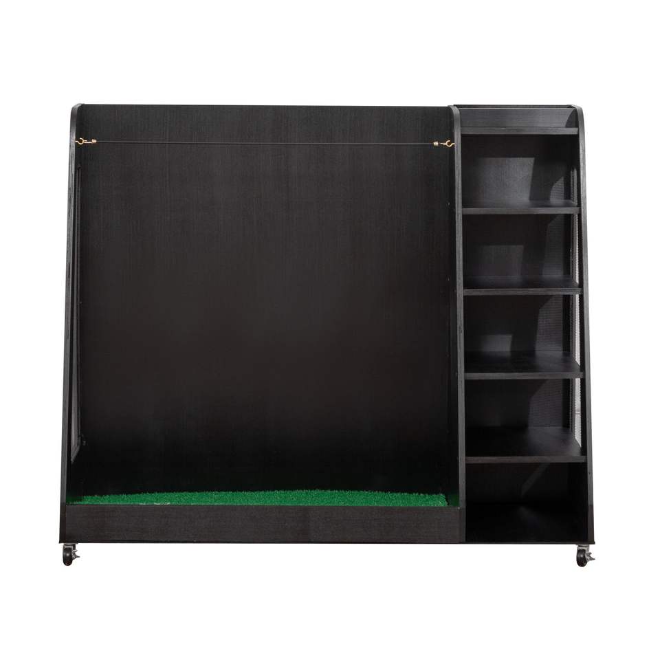 อุปกรณ์จัดระเบียบถุงกอล์ฟไม้47 "x 18" x 40 "พร้อมล้อเก็บของกอล์ฟสีดำมี3ถุง