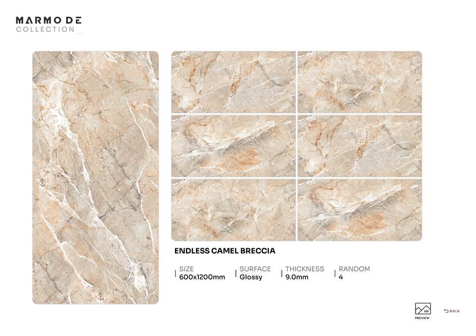 กระเบื้องปูพื้นและผนังลายหินอ่อน ขนาด 600x1200 มม. ผิวมันเงา ติดตั้งง่ายไร้รอยต่อ เหมาะสำหรับพื้นที่ภายในที่ต้องการความหรูหรา