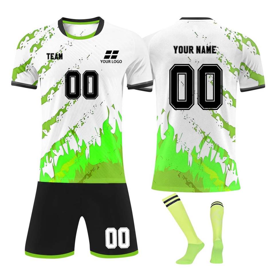 ชุดเครื่องแบบฟุตบอล7v7ที่ทันสมัยเสื้อตาข่ายใส่สบายกางเกงขาสั้นมีการออกแบบที่ทันสมัยการระเหิดชื่อตามสั่ง