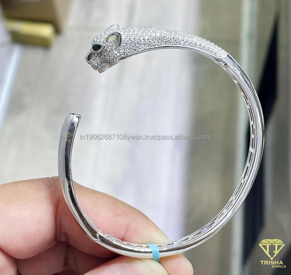 กำไลหัวเสือดำสีเงิน925มีสไตล์สำหรับผู้หญิงเพชรที่ปลูกในห้องปฏิบัติการประกาย VVS