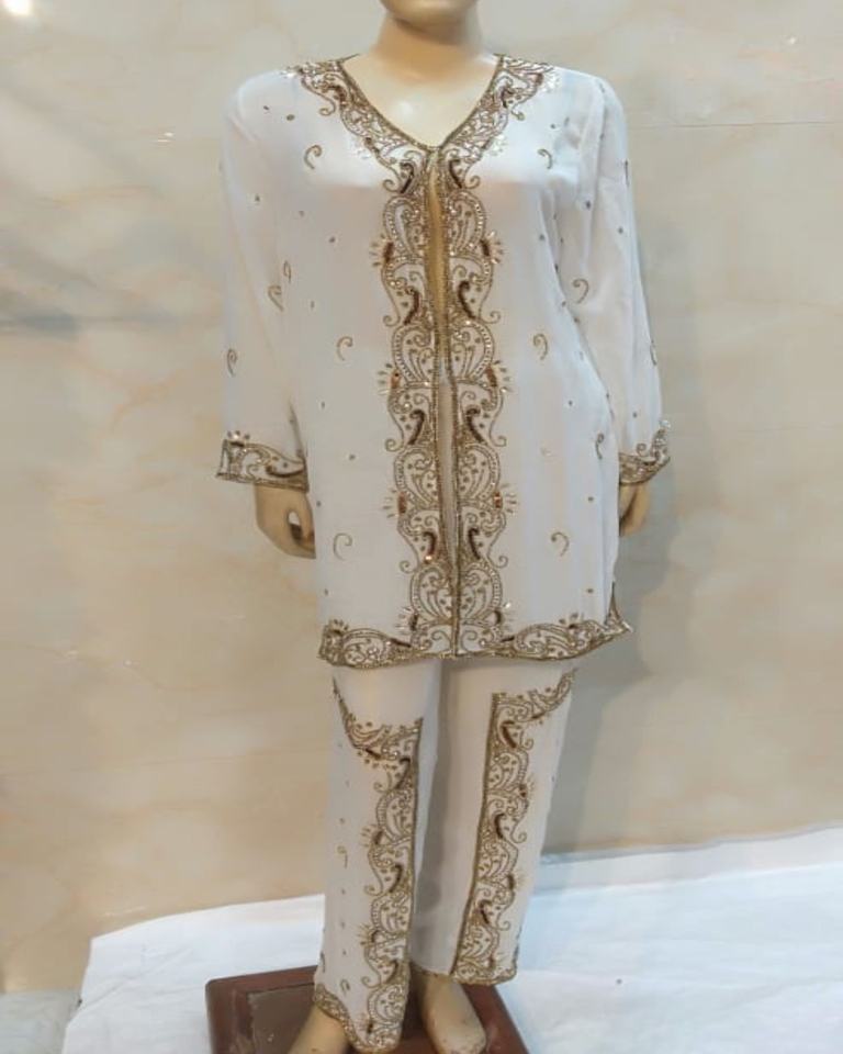 คำอธิบาย:เสื้อและกางเกงปักอย่างสวยงามทำให้ดูคลาสสิกมาก