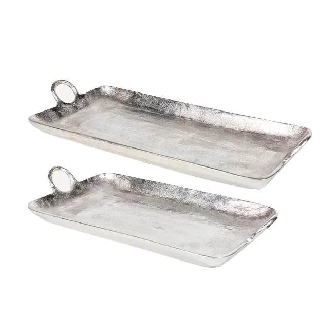 ถาดอลูมิเนียมมีสไตล์พร้อมที่จับถาดเสิร์ฟอาหารแบบตั้งโต๊ะสีเงินสำหรับใช้ในโรงแรมและงานแต่งงาน