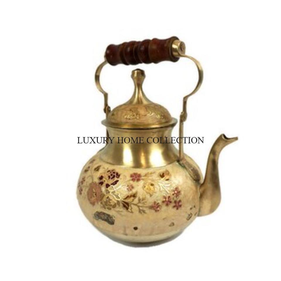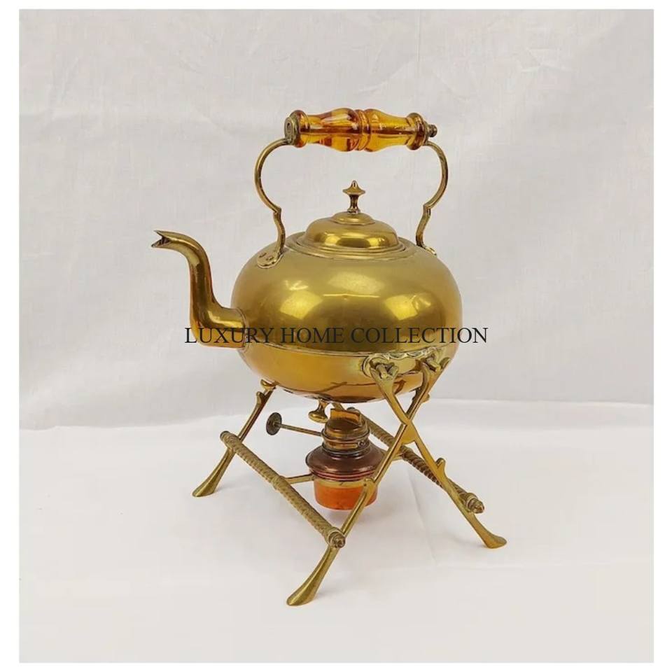 กาน้ำชาทองเหลืองโบราณที่มีสไตล์พร้อมการใช้งานยาวนานทนทานเหมาะสำหรับการตกแต่งบ้านและการชงชาที่ใช้งานได้จริง