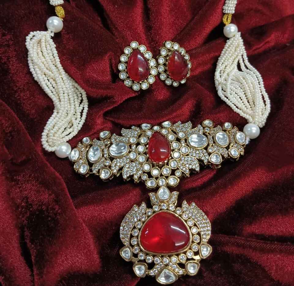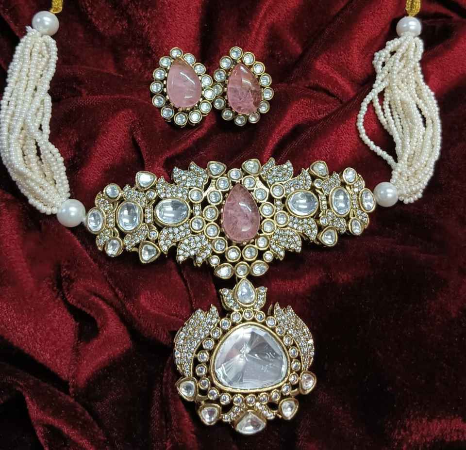ชุดเครื่องประดับทองโบราณชุบทองคำแบบโพลกี้ คุนดัน พร้อมต่างหู ดีไซน์ทันสมัย เหมาะสำหรับงานแต่งงานและงานฉลองครบรอบ