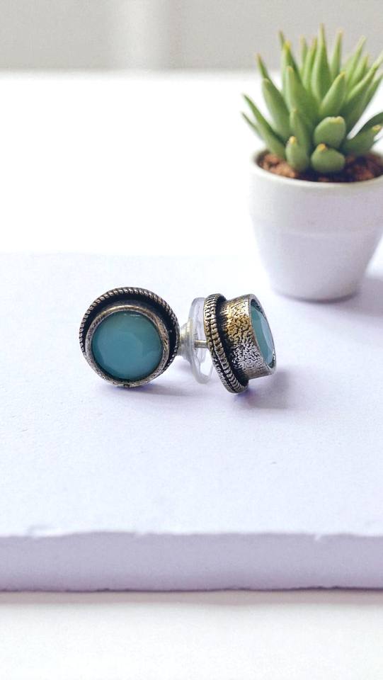 ต่างหูอัญมณีสีฟ้าน้ำทะเลมีสไตล์เครื่องประดับแฟชั่นเงินเยอรมัน
