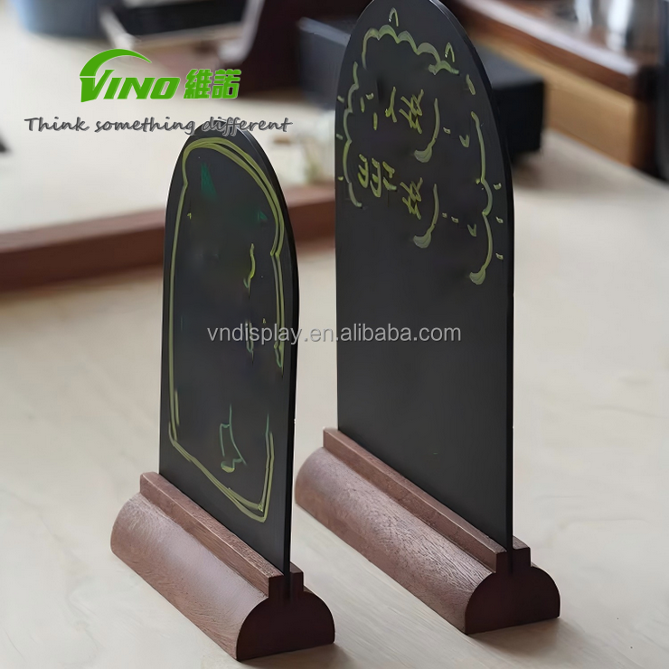 ตู้โชว์เมนูกระดานดำขนาดเล็กดีไซน์โค้งมีสไตล์พร้อมอุปกรณ์บุฟเฟ่ต์ฐานไม้จริง