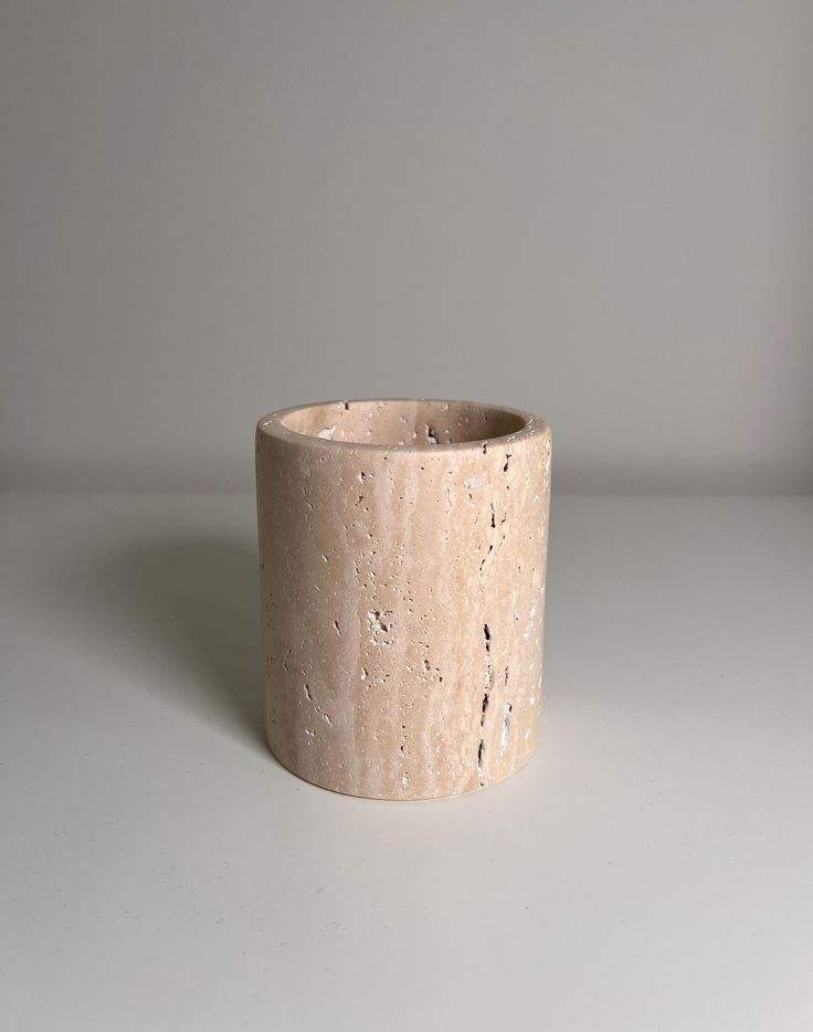 กระปุกหินอ่อนสีเบจทรงสวยงามพร้อมฝาปิด กล่องเก็บของตกแต่งอย่างมีสไตล์สำหรับอุปกรณ์ในห้องน้ำและห้องครัว