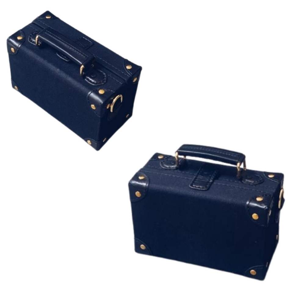 กระเป๋าผ้าใบสีดำมีสไตล์มินิแบบกล่องกระเป๋าคาดลำตัวที่ได้แรงบันดาลใจจากวินเทจพร้อมฮาร์ดแวร์สีทองหรูหราสำหรับผู้หญิง