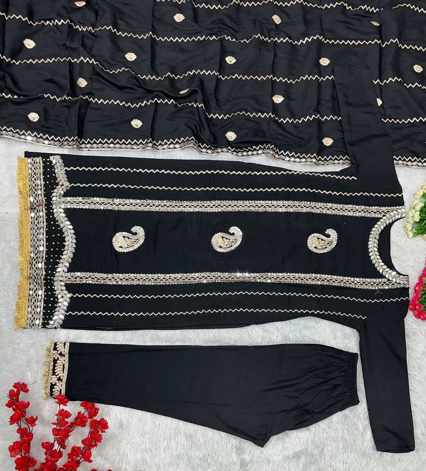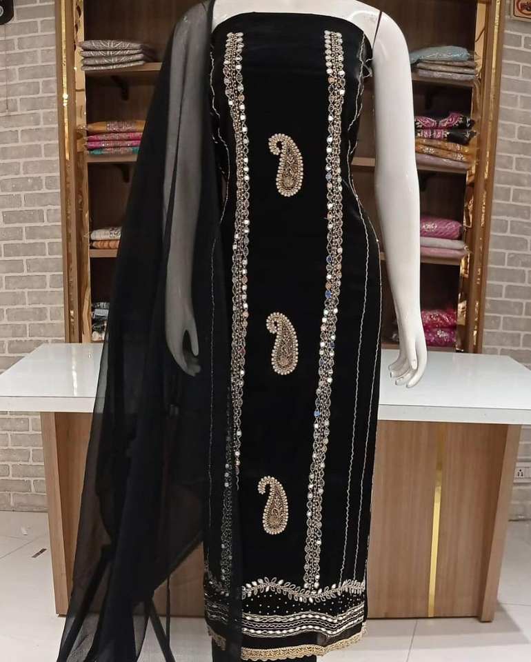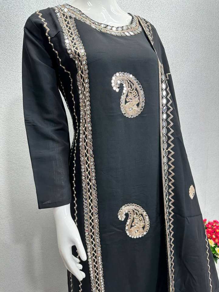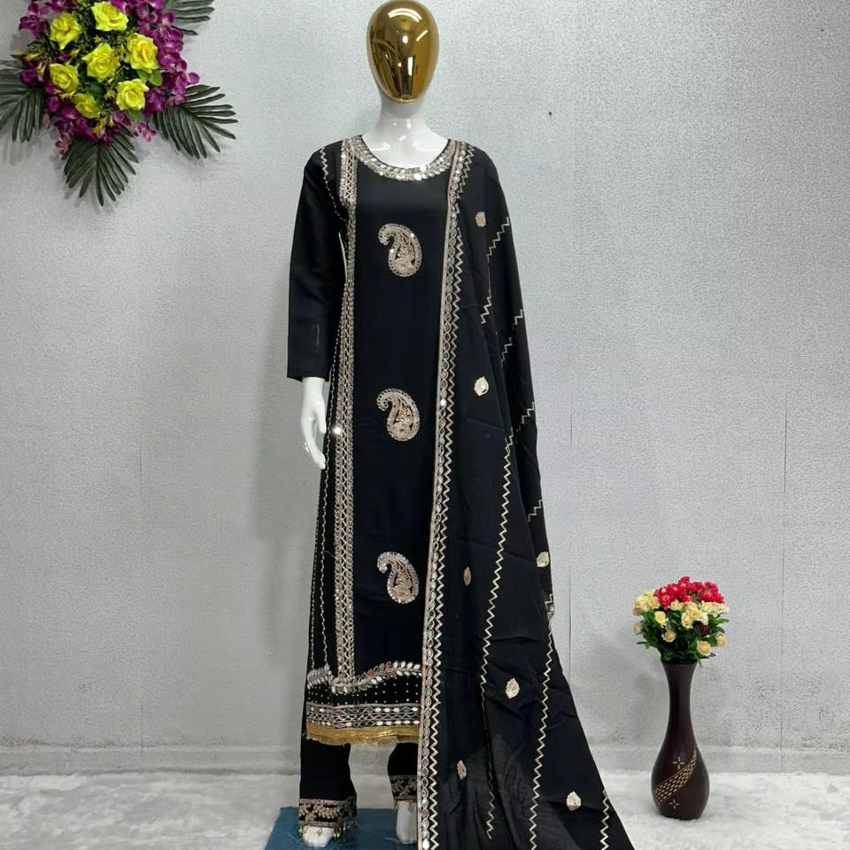 Stylish Traditional Black Salwar Suit Women Heavy Embroidery Real Mirrors Knee-Length All Seasons Festivals Parties Indian
