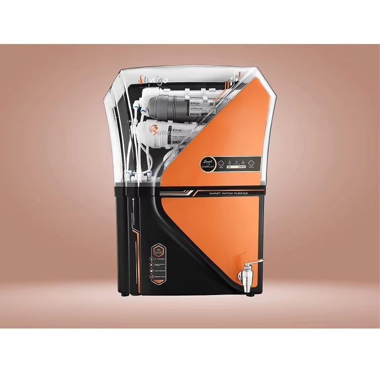 เครื่องกรองน้ำทองแดงสีดำที่ทันสมัยพร้อมระบบออสโมซิสผันกลับขั้นสูงและดีไซน์ถังใสจากอินเดีย