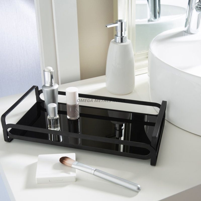 ถาดเสิร์ฟทรงวงรีสีดำมีสไตล์พร้อมขอบสีทองและผิวเรียบเหมาะอย่างยิ่งสำหรับการจัดงานเลี้ยงและอาหารเรียกน้ำย่อย