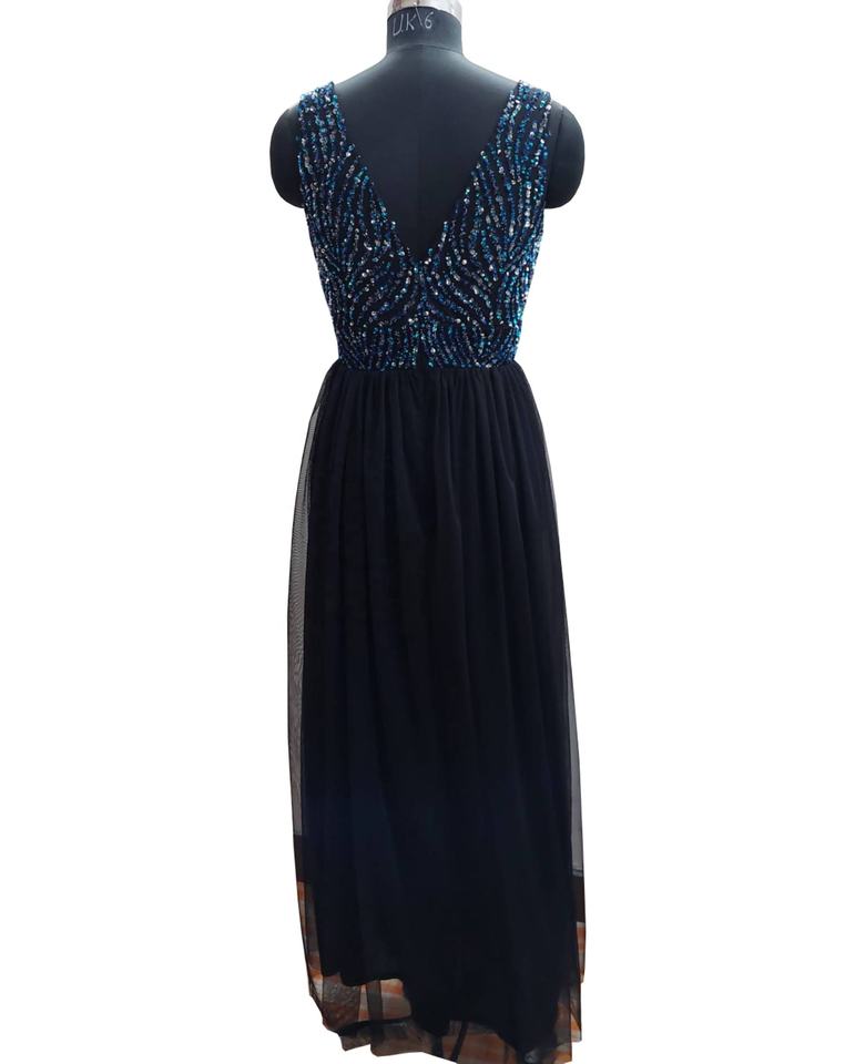 คำอธิบาย:งานปักด้วยมือหนักด้วยสีเงินสีฟ้าเลื่อมและลูกปัด