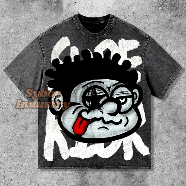 เสื้อยืดสตรีทสีดำสุดเก๋เสื้อยืดรัดรูปผ้าฝ้าย100% กำหนดเองพิมพ์ลายหินแบบล้างหน้า300 GSM