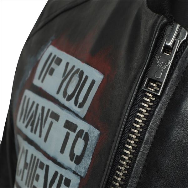 แจ็กเก็ตหนังผู้ชายสีดำมีสไตล์สำหรับฤดูหนาวมีทุกขนาดพร้อมโลโก้และซิปออกแบบได้ตามต้องการ