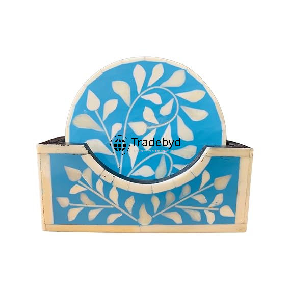 แผ่นรองแก้วลายฝังกระดูกสุดหรู ขนาด 4x4 นิ้ว รูปทรงสี่เหลี่ยม ทำด้วยมือ สำหรับตกแต่งโต๊ะอาหาร Tradebyd
