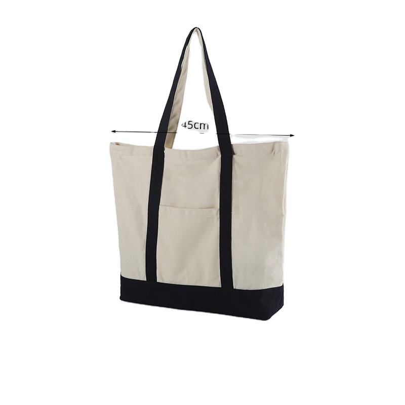 กระเป๋าผ้าแคนวาสมีสไตล์พร้อมกระเป๋าด้านนอกปิดซิปด้านบนของจำเป็นประจำวัน77