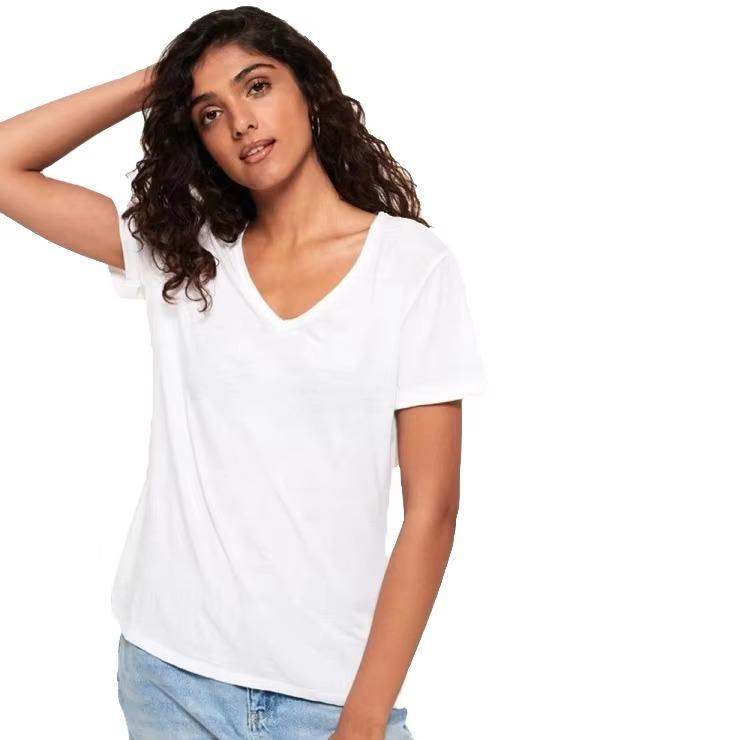 เสื้อยืดผู้หญิงแบบลำลองมีสไตล์เสื้อยืดป้องกันการหดตัวกำหนดโลโก้100% 220ผ้าฝ้าย GSM ทันสมัยใส่ได้ทุกเพศเสื้อยืดไหล่ตก