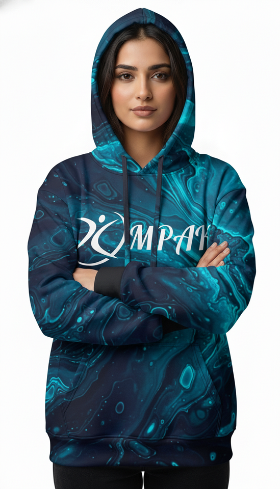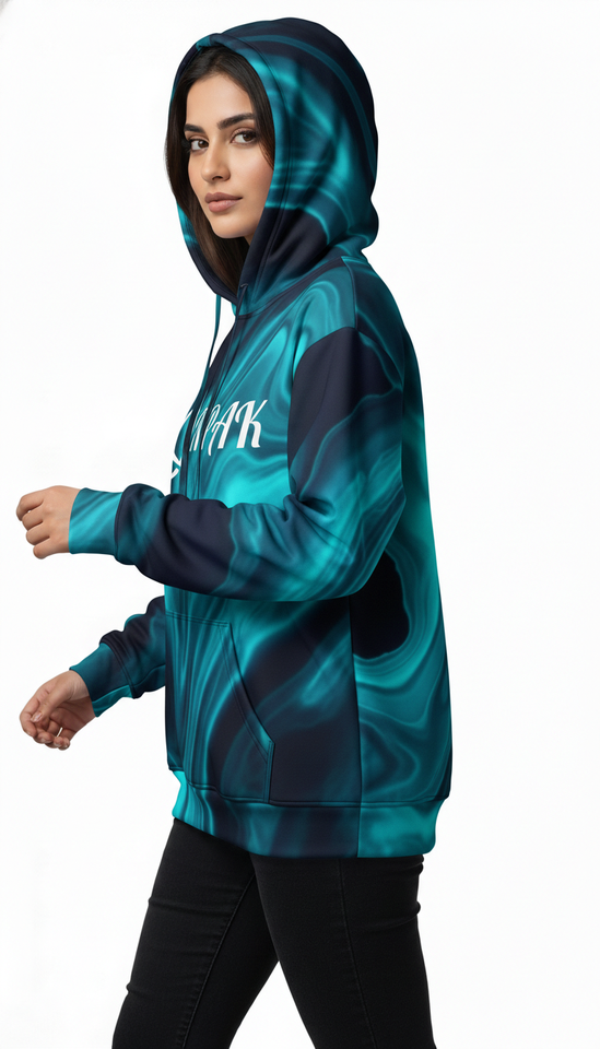 เสื้อฮู้ดดี้ทรงโอเวอร์ไซส์สไตล์ลำลองเท่ๆ สำหรับทุกเพศ พิมพ์ลายแบบซับลิเมชั่นเต็มตัว เหมาะสำหรับคอลเลคชั่นสตรีทแวร์แนวเมือง