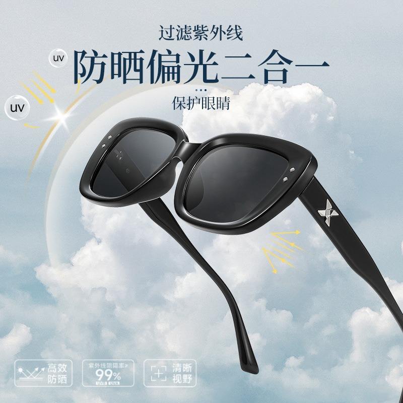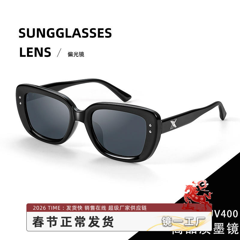 แว่นกันแดดทรงแคทอายสุดเท่ สีดำ ยูนิเซ็กซ์ ป้องกันรังสียูวี 385 เลนส์โพลาไรซ์ TAC ป้องกันแสงแดดสำหรับกิจกรรมกลางแจ้ง ขับรถ ปั่นจักรยาน