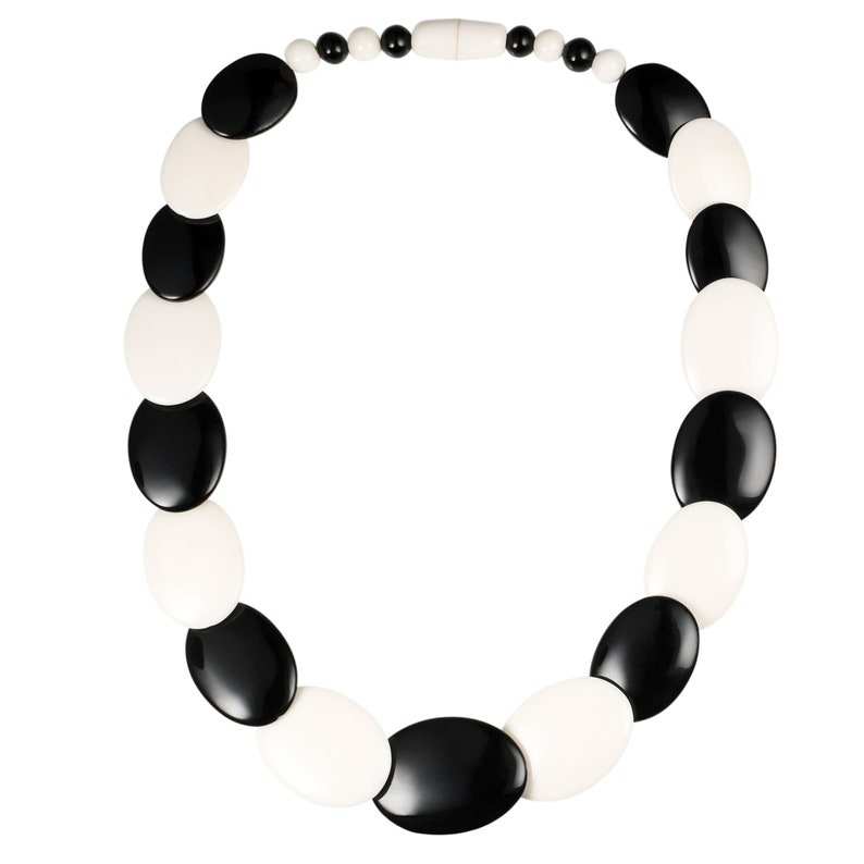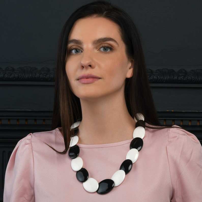 Stylish Chunky Resin Handcrafted Oval Beads Pendant Necklace Black White Bold Statement Angel Trendy Party Wear Women