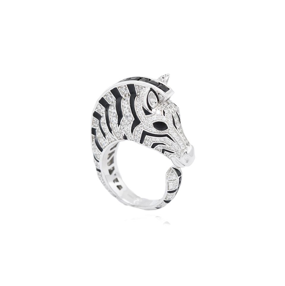 แหวนหมั้นสีเงินสำหรับผู้หญิง/ยูนิเซ็กซ์ ดีไซน์หรูหราคลาสสิก ลายม้าลาย ประดับเพชรซิคอนทรงคุชชั่น ชุบโรเดียม