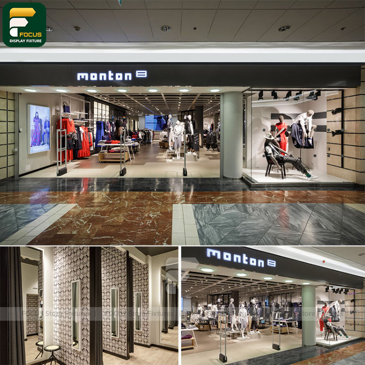 ชั้นวางเสื้อผ้าแบบมีสไตล์ ตู้โชว์เสื้อผ้า ตู้กระจกสำหรับร้านค้า เฟอร์นิเจอร์ร้านค้า