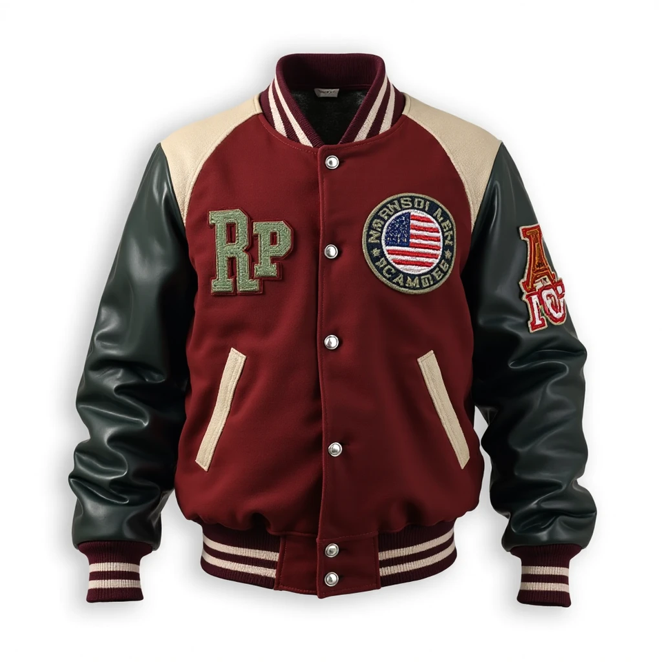 แจ็คเก็ตบอมเบอร์แขนหนังและขนสัตว์เคลือบอย่างมีสไตล์สำหรับทุกเพศ รับออกแบบตามสั่งจากโรงงาน ให้ความเรียบเนียนและทนทาน