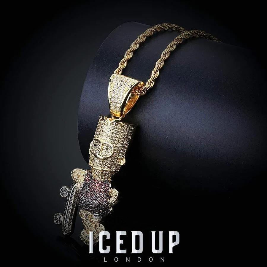 จี้เพชรโมอิสซาไนต์สีสันทันสมัย ประดับเพชรเต็มตัว พร้อมชุบทองบนเงินแท้ 925 ดีไซน์บาร์ต ซิมป์สัน เครื่องประดับสุดหรูในราคาประหยัด