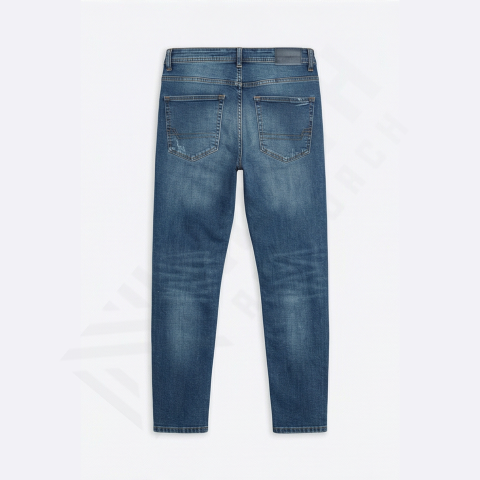 2026 Custom Men's Straight Leg Jeans Mid Blue Wash Denim Pants Wholesale Prize Classic Fit Jeans 5 Pocket Trousers For Men