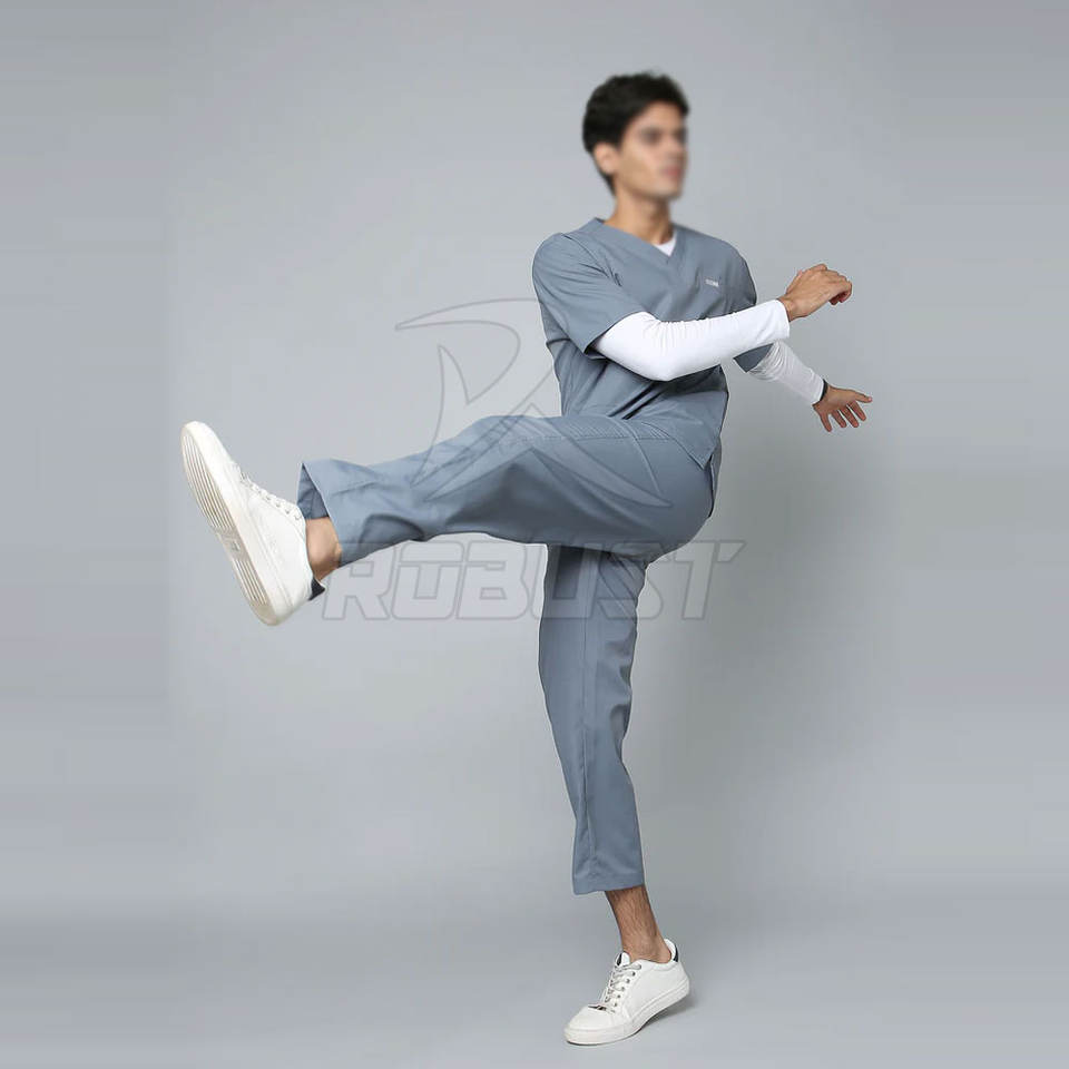 ชุดขัดผิวสำหรับผู้ชายชุดเครื่องแบบทางการแพทย์ผ้าสแปนเด็กซ์ยืดหยุ่นได้สำหรับพยาบาลสวมใส่สบายมีสไตล์