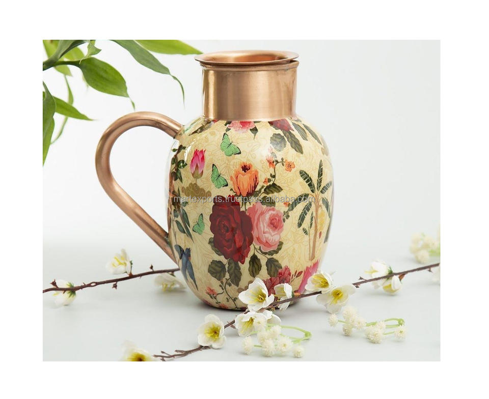 เหยือกทองแดงมีสไตล์พร้อมที่จับเหยือกเก็บน้ำโลหะเพื่อเพิ่มสุขภาพตามธรรมชาติ