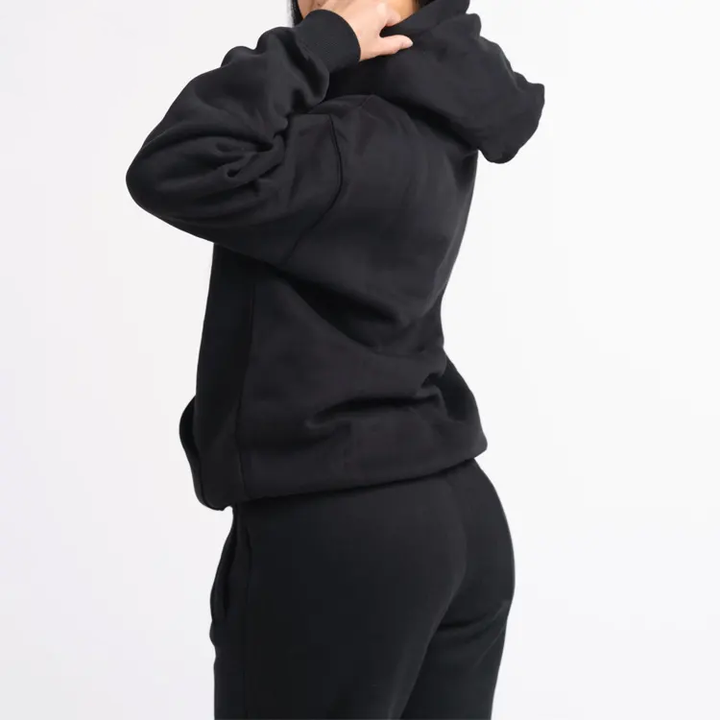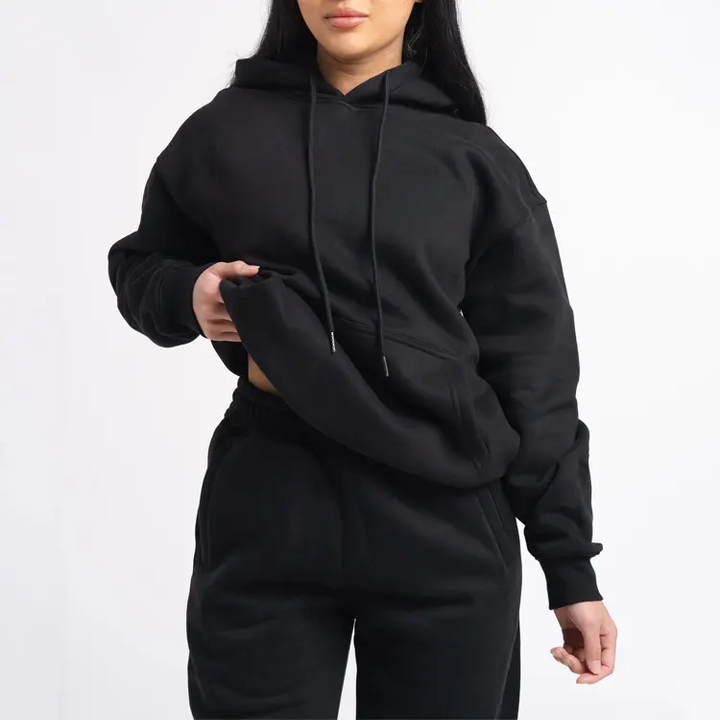 เซ็ตชุดวอร์มผ้าฟลีซสำหรับผู้หญิงชุดวอร์มผ้าคอตตอน35% 65% สีขาวล้วนมีสไตล์