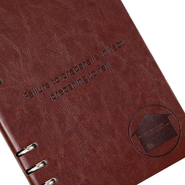 สมุดบันทึกธุรกิจปกแข็งแบบเย็บ 6 เส้น ขนาด A5 ทำจากหนัง PU รีฟิลได้ พร้อมโลโก้แบบนูน ดีไซน์ทันสมัย เป็นมิตรกับสิ่งแวดล้อม