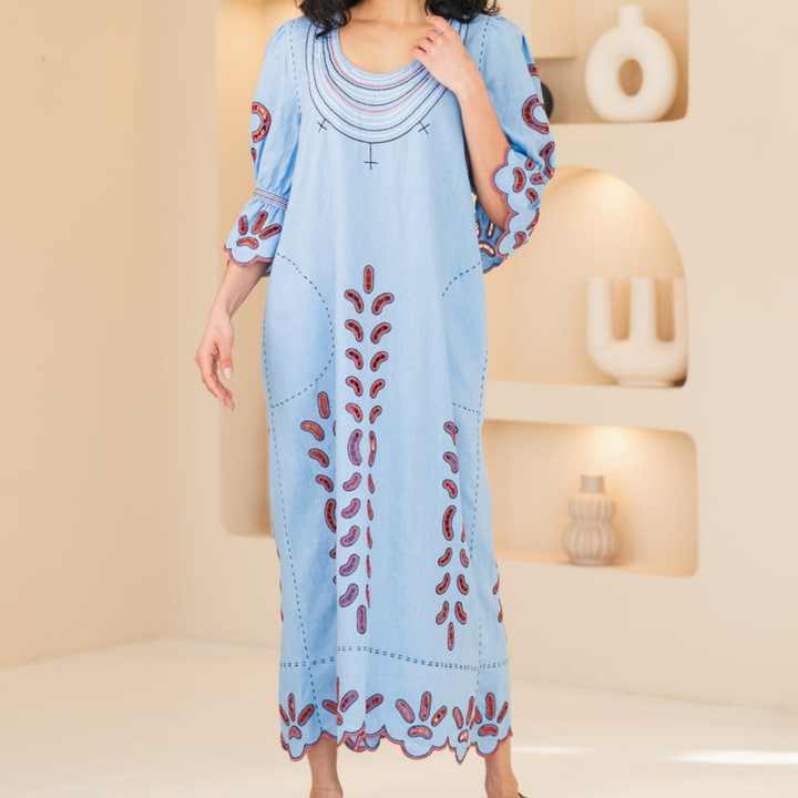 เดรสผ้าฝ้ายลินินทรงสวยเก๋ คอโอ แขนสั้น ชายระบาย แต่งสไตล์ลำลอง ความยาวปานกลาง สำหรับผู้หญิง เหมาะสำหรับฤดูร้อน