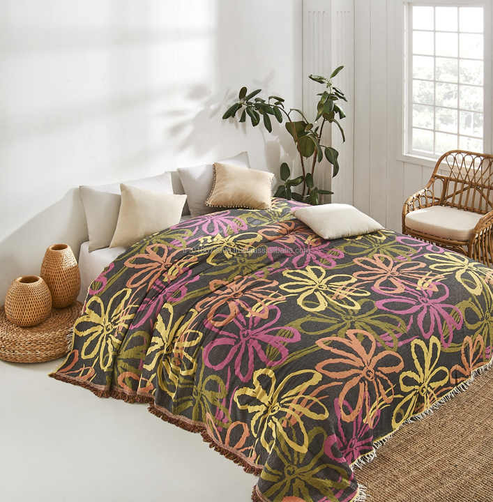 ผ้าห่มดีไซน์ทันสมัย ผ้าฝ้าย 100% ลายแจ็คการ์ด ขนาด 230x260 ซม. 90x102 นิ้ว คอลเลคชั่นผ้าห่มแจ็คการ์ด ผ้าคลุมเตียง