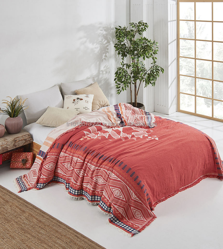 ผ้าห่มผ้าฝ้าย100% แจ็คการ์ดขนาด230x260ซม. 90x102นิ้วผ้าห่มผ้าแจ็คการ์ดดีไซน์ทันสมัย
