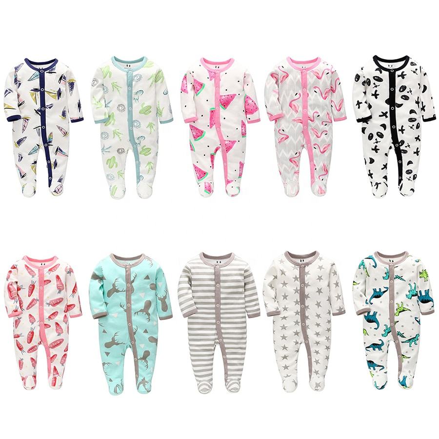 ชุดรอมเปอร์เด็กทารกผ้าฝ้ายเจอร์ซีย์เนื้อนุ่มพิเศษ 100% พิมพ์ลาย เหมาะสำหรับทุกฤดูกาล