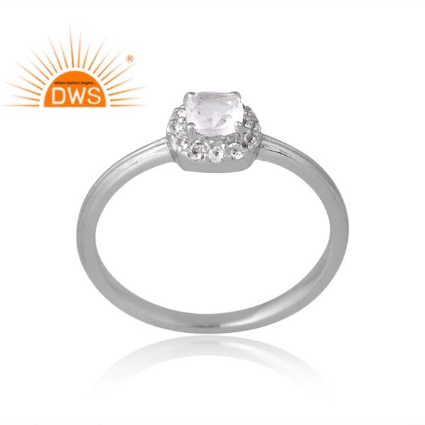 แหวนพลอยสีขาวและควอตซ์คริสตัลสีเงินแท้925ดีไซน์ทันสมัยผู้ผลิตเครื่องประดับตามสั่ง