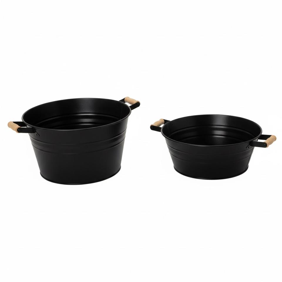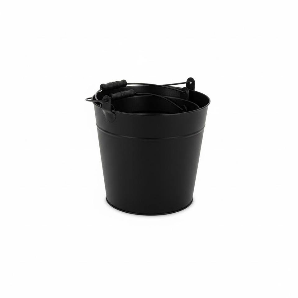 ถังโลหะชุบสังกะสีเคลือบผงสีดำ ดีไซน์ทันสมัย พร้อมหูหิ้ว อุปกรณ์ทำสวน ถังใส่ดอกไม้ ราคาสุดคุ้ม