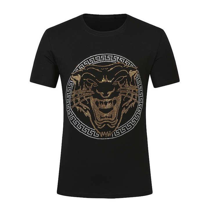 เสื้อยืดผู้ชายดีไซน์ทันสมัยประดับเพชรเทียม น้ำหนักเบา ขายดี ไม่ยับ สวมใส่สบาย ระบายอากาศได้ดี เสื้อยืดผู้ชายประดับเพชรเทียม