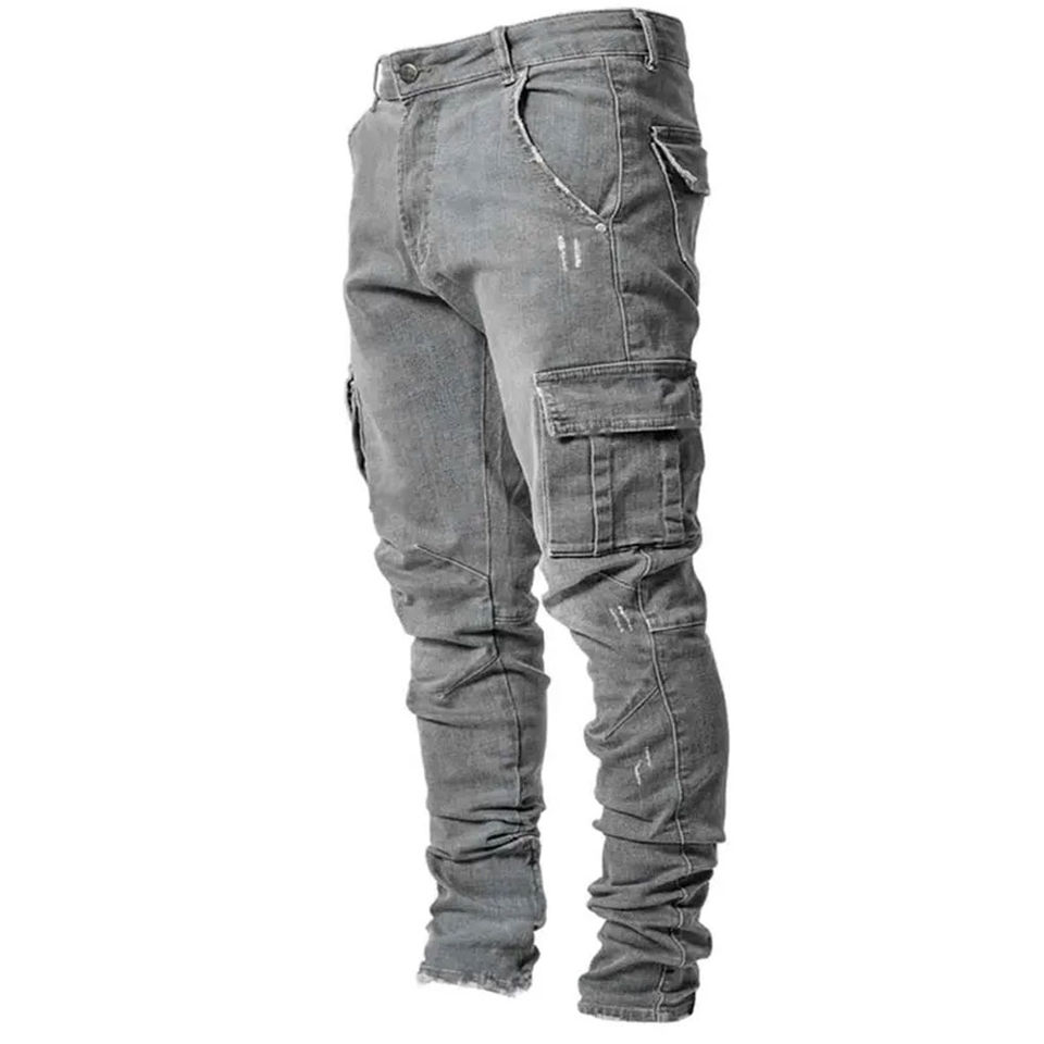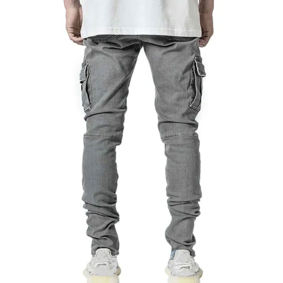 กางเกงยีนส์ของผู้ชายทรงสลิมฟิตแนวสตรีทกางเกงยีนส์ระบายอากาศได้ดีมีสไตล์