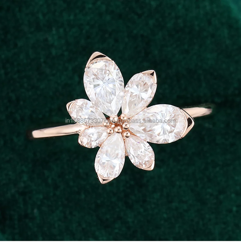 แหวนเพชรรูปดอกไม้จากนักออกแบบที่มีสไตล์แหวนชุบทองพร้อมลายตัดมาร์คีส์ขนาดกำหนดเองได้